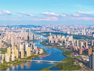 天气晴好,知音桥、汉水铁路桥、月湖桥、江汉桥尽收眼底。