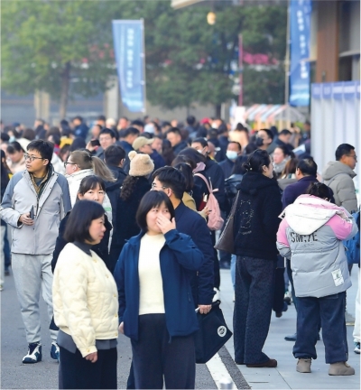 众多求职者来到春风行动专场招聘活动现场寻找心仪的岗位。