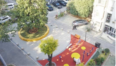 除了满足居民晒太阳的需求,团队还根据居民提出的增加儿童活动空间、尽可能保留绿化等想法,在花园进行无障碍通行、健身区铺设塑胶地面等改造设计。1月4日,新花园建成开园,秦晴正在为居民制作花园养护手册,还准备在花园开展共享菜园种植体验,让居民共同维护新花园。
