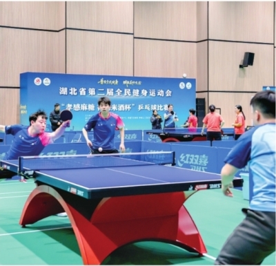 湖北省第二届全民健身运动会采取主赛区与分赛区联动办赛模式,设立主赛区、孝南赛区、应城赛区、汉川赛区,覆盖孝感市内多个体育场馆、酒店及景区。其中,乒乓球比赛在孝感射击馆举行,在三天的赛程中,全省200余名运动员展开男子单打、女子单打、男子双打、女子双打及混合双打五个项目的精彩角逐。武汉代表队实力雄厚,一举包揽了男子单打、女子单打、男子双打、混合双打四个小项的金、银牌。