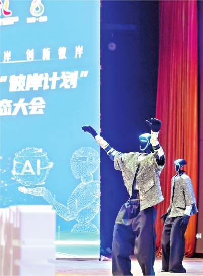 江岸区“彼岸计划”生态大会现场,“地标马克”机器人跳舞。