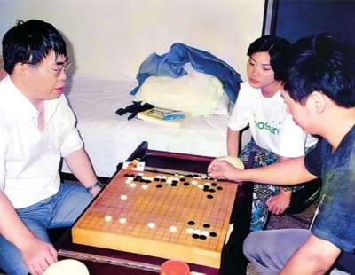 聂卫平(左)与阮云生在国家队宿舍中对弈。