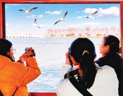 随着观鸥热潮兴起,越来越多的游客开始尝试组合式的深度游览方案。来自郑州的王先生一家上午乘船观赏红嘴鸥,下午从磨山梅园码头下船后,便步行至东湖梅园。王先生说:“上午看动态的鸥群,下午赏梅花,了解梅文化,中式园林也很出片,一天安排得充实特别。”