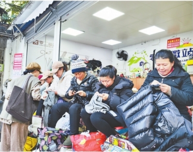 长江日报讯(记者刘克取 通讯员黄昭)1月16日下午,武昌区水果湖北环路2号零工微站门前,9名女工坐成一排,有人低头飞针走线,有人举起衣物对着光线仔细查看针脚。这群平均年龄超过50岁的织补工在“小红书”上被网友称作“水果湖精工织补天团”。