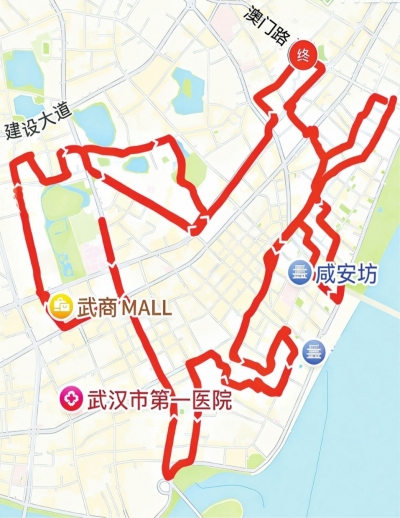 王宏亮介绍,前几年他常来武汉,“大江大湖大武汉”的壮阔城市景象以及市井街巷给了他“万马奔腾”的设计灵感。此外,他用专业软件的地图图源及多个主流导航软件的信息进行验证,以保障路线的基本可行性。一些临时施工或老旧小区改造等未能及时在地图更新的情况,需要通过跑友的实践后再进行修改或标注。