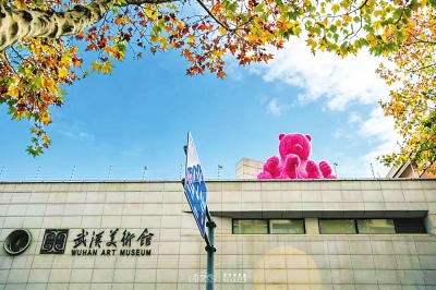 巨型粉色小熊突然“造访”武汉美术馆天台,迅速在社交媒体上走红。