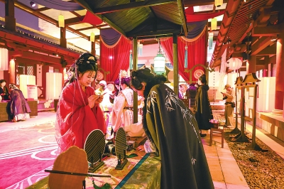 游客可换上汉服逛市集、解谜题。