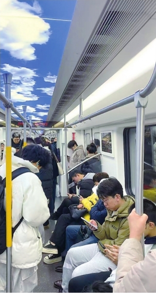 乘坐地铁11号线前往葛店的乘客。