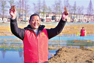 “看这虾,多精神!”郑家湖村村民刘军涛举起刚出水的冬虾,满脸喜悦。他兴奋地说,养冬虾后,每亩虾稻田能增收2000元。“我承包了500亩,未来能实现一田三收,年收入还能再涨!”他信心满满。