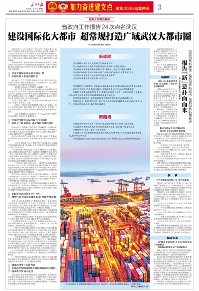 2026年是“十五五”开局之年,做好今年工作意义重大。省政府工作报告在实事求是总结成绩和系统全面部署工作时,至少24次点名武汉并对武汉“国际化大都市”建设提出明确要求,武汉要持续提升城市能级,支持武汉大力推进“3个国际城市”建设——国际研发中心城市、国际会展中心城市、国际消费中心城市建设。
