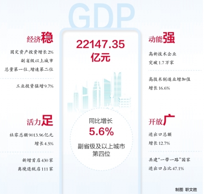 长江日报讯(记者陈永权)1月28日,武汉市统计局、国家统计局武汉调查队发布2025年武汉经济“成绩单”。初步核算,去年全市地区生产总值(GDP)达22147.35亿元,按不变价格计算,同比增长5.6%,增速高于全国、全省水平,位于副省级及以上城市第四。