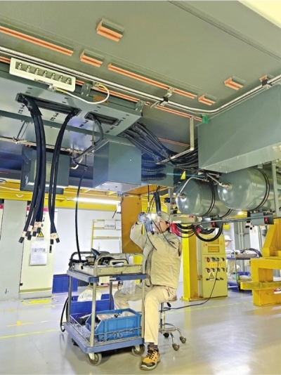 记者看到,产线上分布着9节车厢,形成一个U字形,工人们在进行组装、接线等工作。