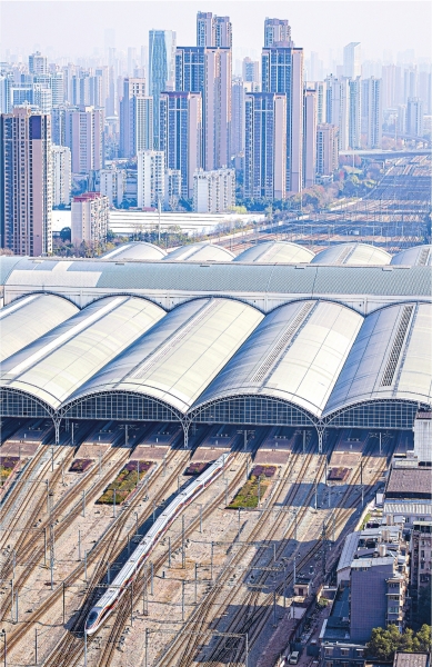 上月26日,沪渝蓉沿江高铁武宜段开通运营,武汉到宜昌只需约70分钟。图为首趟G6800次列车抵达终点汉口站。