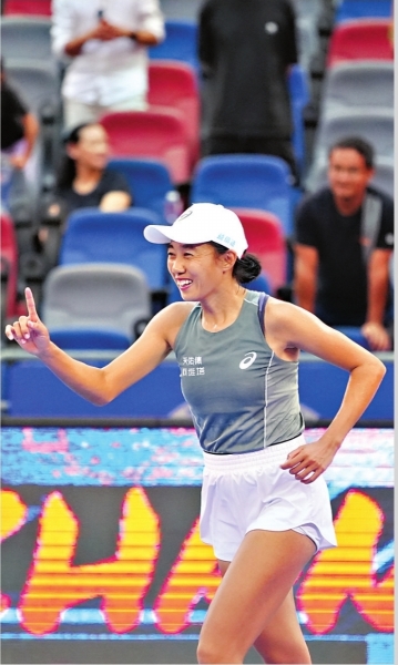 2025武汉网球公开赛上,张帅向观众挥手致意表示感谢。
