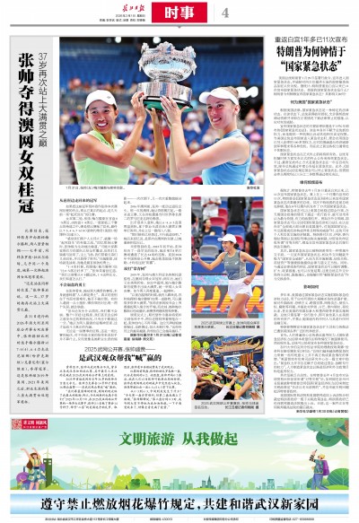 在31日进行的2026年澳大利亚网球公开赛女双决赛中,张帅搭档比利时选手梅尔滕斯以7∶6(4)、6∶4力克达尼丽娜(哈萨克斯坦)/克鲁尼奇(塞尔维亚),夺得冠军。这是张帅继2019年澳网、2021年美网之后,职业生涯的第三座大满贯女双冠军奖杯。