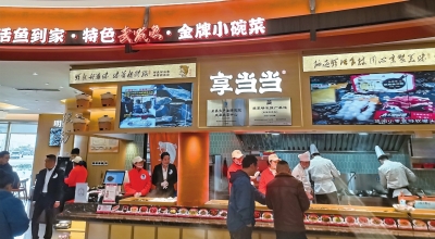 步入服务区南区超2000平方米的主大厅,仿佛瞬间从高速公路穿越至一个热闹的荆楚文化市集。这里最亮眼的当数武昌鱼主题餐厅,从活鱼到非遗技艺,都完整呈现。