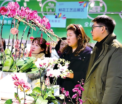 在汉口北鲜花小镇,智能温控系统彻底隔绝了室外的寒意。在年宵花集市,红色成为主色调。火红的冬青、银柳与蜡梅交织出浓烈年味。冬青因其红果像灯笼,成了“网红”年宵花。鲜花绿植生活超市内,被誉为“幸福向你飞来”的蝴蝶兰形态优雅、花色缤纷。