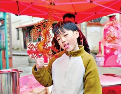 小朋友逛庙会。