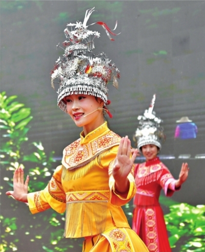 游客正在欣赏东湖梅园古风表演。