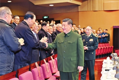 下午4时许,习近平来到老同志中间,全场响起热烈掌声。习近平同大家亲切交流、互致问候,关切询问他们的身体和生活情况,共同回顾过去一年党、国家和军队事业走过的不平凡历程、取得的重大成就。老同志们一致表示,要更加紧密地团结在以习近平同志为核心的党中央周围,坚持以习近平新时代中国特色社会主义思想为指导,深入贯彻习近平强军思想,深刻领悟“两个确立”的决定性意义,坚决做到“两个维护”,贯彻军委主席负责制,弘扬光荣传统、永葆政治本色,坚定信念、勇毅前行,为如期实现建军一百年奋斗目标、高质量推进国防和军队现代化作贡献。