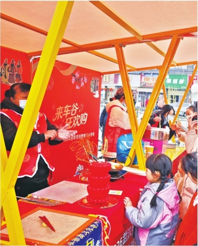 在军山新春消费季活动现场,非遗体验区的传统年味吸引市民驻足。