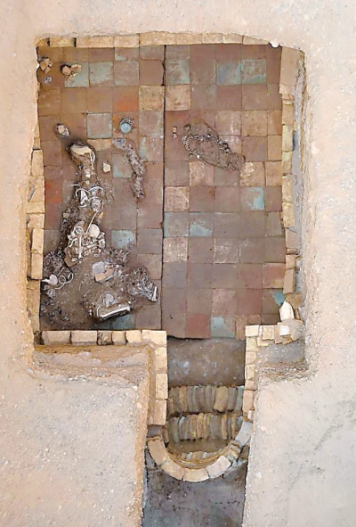 库车市友谊路墓群发掘出土的唐代斜坡墓道砖室墓。