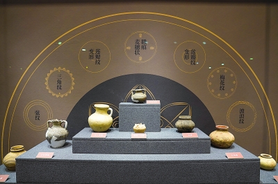 新疆库车市龟兹魏晋古墓遗址博物馆展出的陶器。