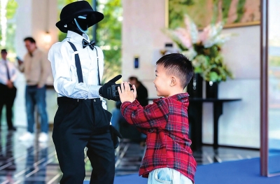 2025年11月28日,光谷润府交付,交付机器人与小业主亲密互动。