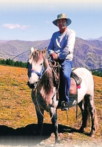 莫力得尔的爸爸骑马巡逻。