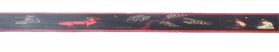 湖北省博物馆的镇馆之宝十件之一《彩绘漆木人物车马出行图圆奁》(局部)。 战国,1986年荆门包山2号墓出土,画面展开全长87.4厘米,宽5.2厘米,描绘了战国时期楚国贵族车马出行的场景,是中国现存最早的长卷“连环画”,也是最早的漆画之一。