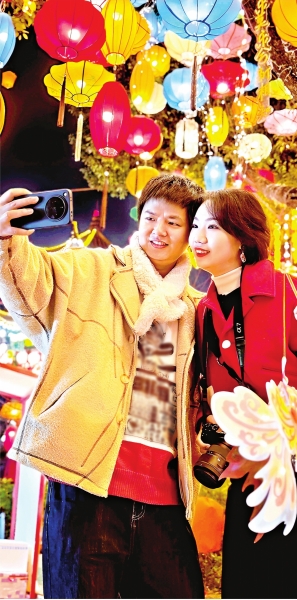 东湖牡丹园“东湖千灯宴·抓马游园会”吸引众多游客前来打卡赏灯。