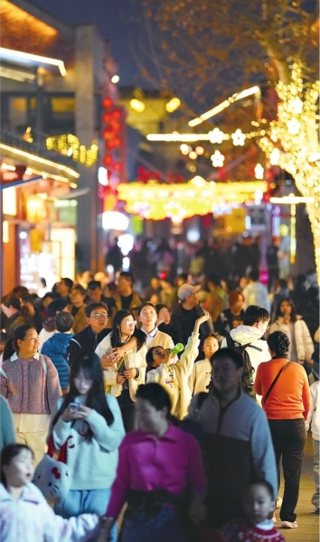 夜幕下,武昌斗级营街区灯火璀璨,游人如织。