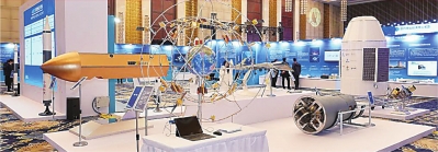 在2025商业航天论坛上,武汉国家航天产业基地展示商业航天领域的部分技术成果、应用产品。