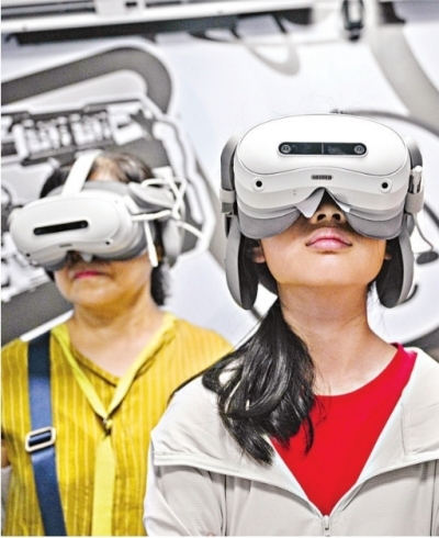 游客在文昌航天科普中心进行MR星际穿越体验。
