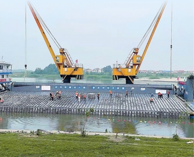 汉江兴隆至蔡甸段2000吨级航道整治工程施工现场。