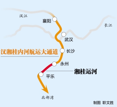 汉湘桂航运大通道湖北段总长1333公里,占通道全长的40%。湖北先后启动 “一船闸一航道”“三船闸一航道”工程,全力提升汉江通航能力。