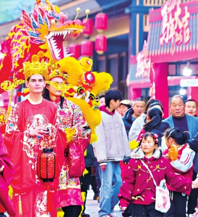 俄罗斯帅哥在甘露山文创城体验中国年。