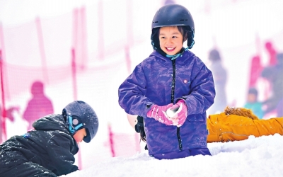 冰雪王国里,孩子们的欢笑声不绝于耳。