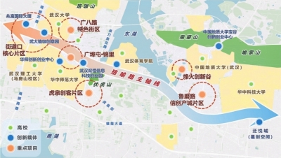 以“环大学创新发展带”为重要依托,打造科技成果集中转化地。洪山区全面启动七大专项行动,统筹推进“山水硅巷”建设,着力提升区域创新活力与发展能级。