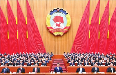 三月的北京,春启华章。人民大会堂大礼堂灯光璀璨,气氛隆重热烈。中国人民政治协商会议会徽悬挂在主席台正中,十面鲜艳的红旗分列两侧。