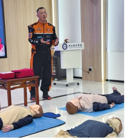 2023年4月起,张宝剑依托红旗渠路饿了么驿站,为骑手、快递员、环卫工等户外劳动者提供就业指导和生活援助,并通过短视频记录助人点滴,传递正能量。2024年至2025年,他两次利用随车急救设备成功救人,相关视频引发广泛关注。同年,他牵头成立“江城骑侠”志愿队,成员从最初33名到如今380多名。送单间隙,他们围在一起学心肺复苏、练包扎手法,把急救技能当成“必修课”。一辆辆电动车穿行街巷,也像一支支流动的应急小分队,把安全感送到城市角落。