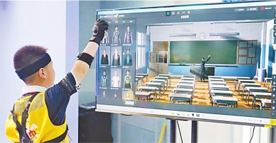 学生们通过人机交互体验“职业变身”。