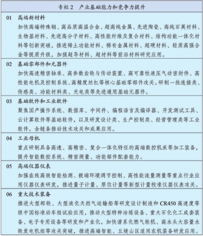 实施产业基础再造工程,加快突破一批重大基础技术、工艺和产品,推进先进材料、跨尺度制造等创新应用。实施重大技术装备攻关工程,突破一批标志性重大技术装备。滚动实施制造业重点产业链高质量发展行动,建立健全产业链供应链安全风险评估和应对机制,持续增强稀土、稀有金属、超硬材料等竞争优势,加强重要战略性矿产高质高效综合利用。推进国家战略腹地建设和关键产业备份,建设战略性产业基地、物资储备基地和基础设施。建立产业基础竞争力调查制度,强化共性技术研发支撑能力。完善首台(套)、首批次、首版次应用政策。