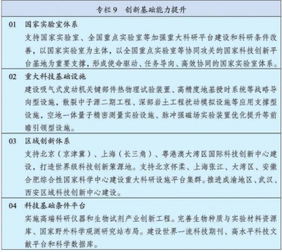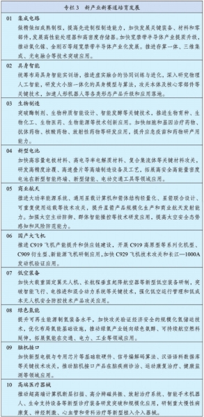 瞄准世界科技前沿强化系统布局,实施人工智能、量子科技、生物科技、新能源等科技战略部署,加快突破基础理论和底层技术,促进转化应用。高水平组织前沿技术预测预见,建立国家关键和新兴技术清单,持续推动前沿技术研发。强化科学研究、技术开发原始创新导向,优化有利于原创性颠覆性创新的环境,创新非共识项目遴选和资助机制,扩大国家重大科技任务、国家自然科学基金原创性颠覆性项目规模和比例。突出国家战略需求,扎实推进国家科技重大专项,超前部署面向2035的国家重大科技项目。(专栏8)