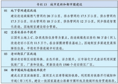 推动城市发展方式转变,建设创新、宜居、美丽、韧性、文明、智慧的现代化人民城市。实施激发产业创新活力专项行动,提升城市产业创新策源力。高质量推进城市更新,开展城市体检,加快建设完整社区,健全城市更新实施机制,建立与建筑功能转换和混合利用需求相适应的规划调整机制,构建可持续的城市建设运营投融资体系。高效利用城市地下空间。推动城市发展绿色低碳转型,优化城市公共交通服务,健全城市公园、绿道网络和慢行交通系统,不断完善15分钟健身圈。加快城市基础设施生命线安全工程建设,推进老旧管网和危旧房改造,提升城市排水防涝能力。严格限制超高层建筑,提升高层建筑火灾防范和救援能力。加强城市风貌和建筑设计管理,推动城市建筑更好体现中华美学和时代风尚。加强互嵌式社区建设。推进城市全域数字化转型,完善城市管理机制和运行管理服务平台,推动城市治理智慧化精细化。