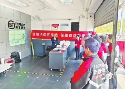兴业银行武汉分行前往顺丰配送点,为快递员普及金融知识。