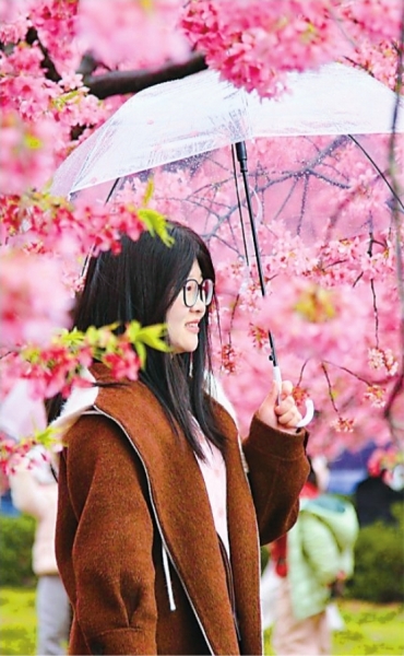 春雨绵绵,花事未了。这座被大江大湖滋养的城市里,樱花正静静舒展、从容绽放,与游客共赴春日之约。