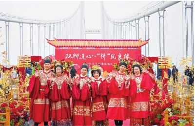 3对建设者在自己参与建成的双柳长江大桥上举办集体婚礼。