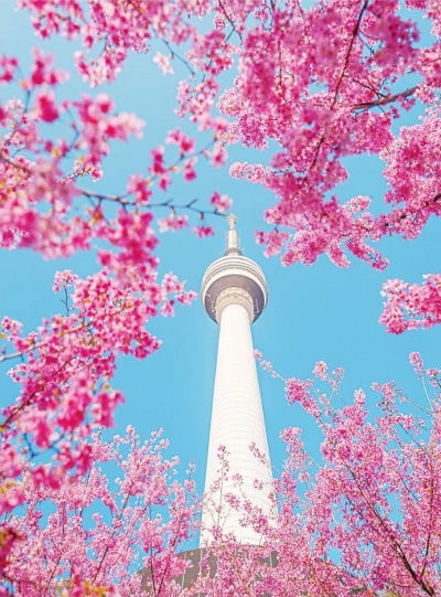 龟山电视塔与樱花同框。