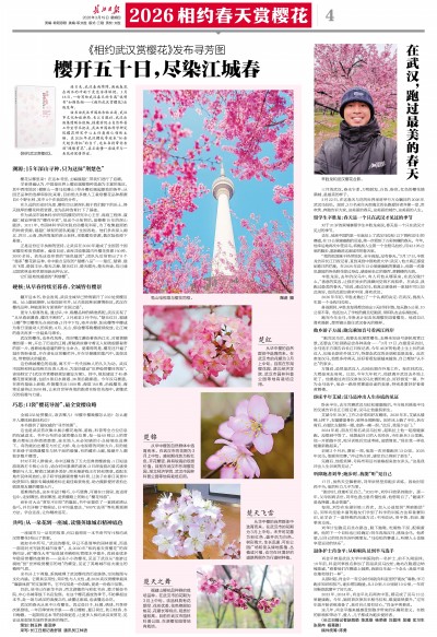 就如书中所写,“武汉的樱花,早已不是简单的园林景观,而是一部用时光写就的城市故事”。从2020年“相约春天赏樱花”的深情约定,到“樱花大考”促进城市精细化管理水平提升,再到连续多年稳居赏樱热度榜首——这朵小小的樱花,见证了武汉从“旅游过境地”到“世界级赏樱目的地”的蝶变,见证了英雄城市浴火重生的精神气质。